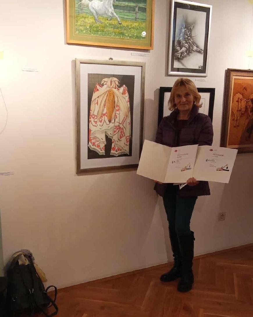 Slike su rađene crtačkom tehnikom drvenim bojama i olovkom. Ova plodna autorica sudjeluje, osim na izložbama Hrvatskog sabora kulture diljem lijepe naše gdje su joj slike također pohvaljivane ili nagrađene..