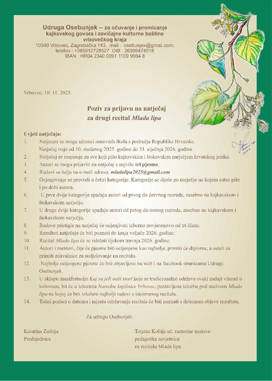 Objava nagrađenih i pohvaljenih radova s recitala Mlada lipa